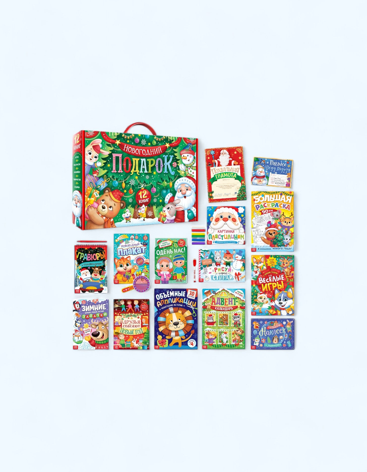 Подарочный комплект из 12 книг, наполненных развивающими заданиями, головоломками и сказками. Это идеальный способ занять ребенка в праздничные дни, даря ему радость и новогоднее настроение.