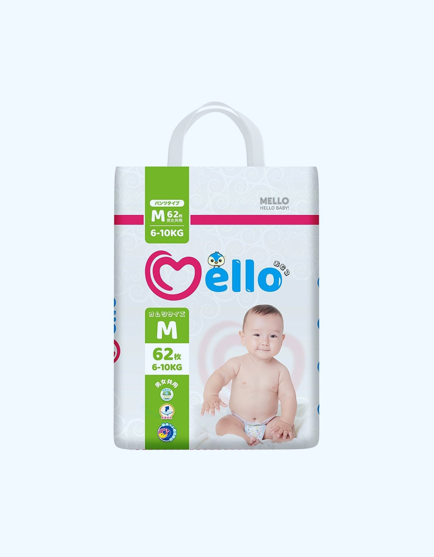 Mello Подгузники, M, 6-10 кг, 62 шт
