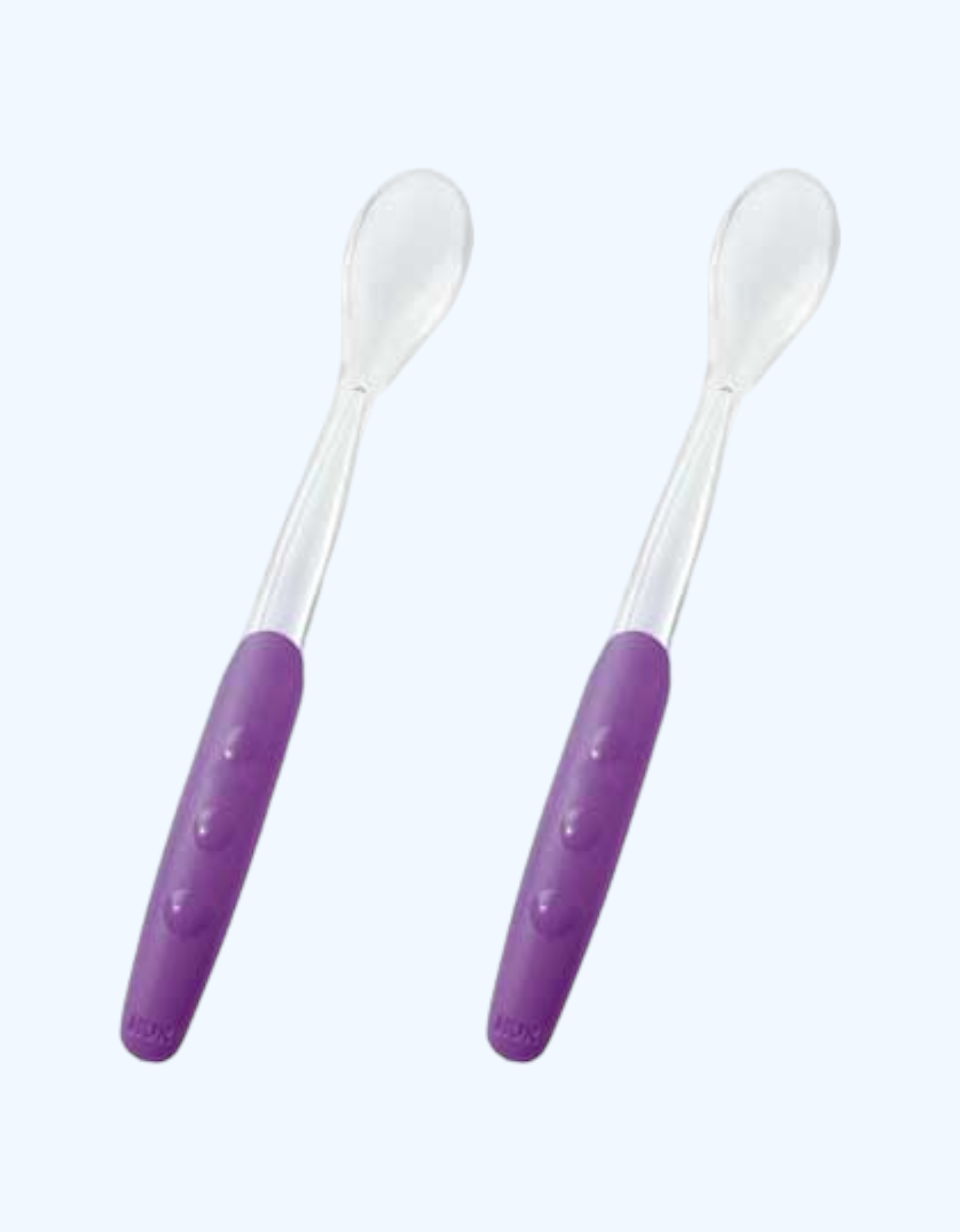 Две мягкие силиконовые ложки для кормления детей от 4 месяцев. Специально разработаны для плавного перехода от грудного вскармливания или кормления из бутылочки к прикорму. Имеют закругленные края, эргономичные нескользящие ручки и длинную ручку для удобства извлечения пищи из глубоких емкостей.